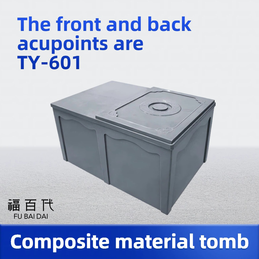 TY-601 फ्रंट और रियर डबल-चेंबर टॉम्ब बॉक्स मिश्रित सामग्री को ढालकर बनाया गया है, जिसमें एक स्थिर संरचना और भारी बनावट है। बाहरी व्यास 430×618×400 मिमी है। यह सीधे भूमिगत स्थापना का समर्थन करता है और जटिल प्रक्रियाओं के बिना संचालित करना आसान है। मुख्य लाभ यह है कि "एक समाधि का पत्थर पीछे के दफन क्षेत्र के ऊपर स्थापित किया गया है", जो दफन और स्मारक स्थान को एक में एकीकृत करता है, अतिरिक्त भूमि पर कब्जा नहीं करता है, और हरित अंतिम संस्कार की अवधारणा के अनुरूप है।